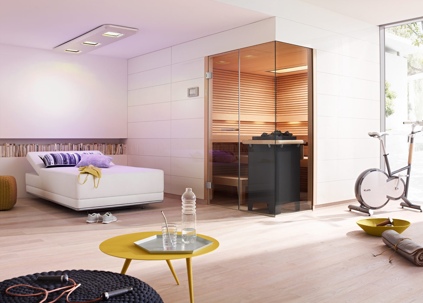 Die Themen Sauna und Wellness werden in zwei Anwendungsbeispielen inszeniert.