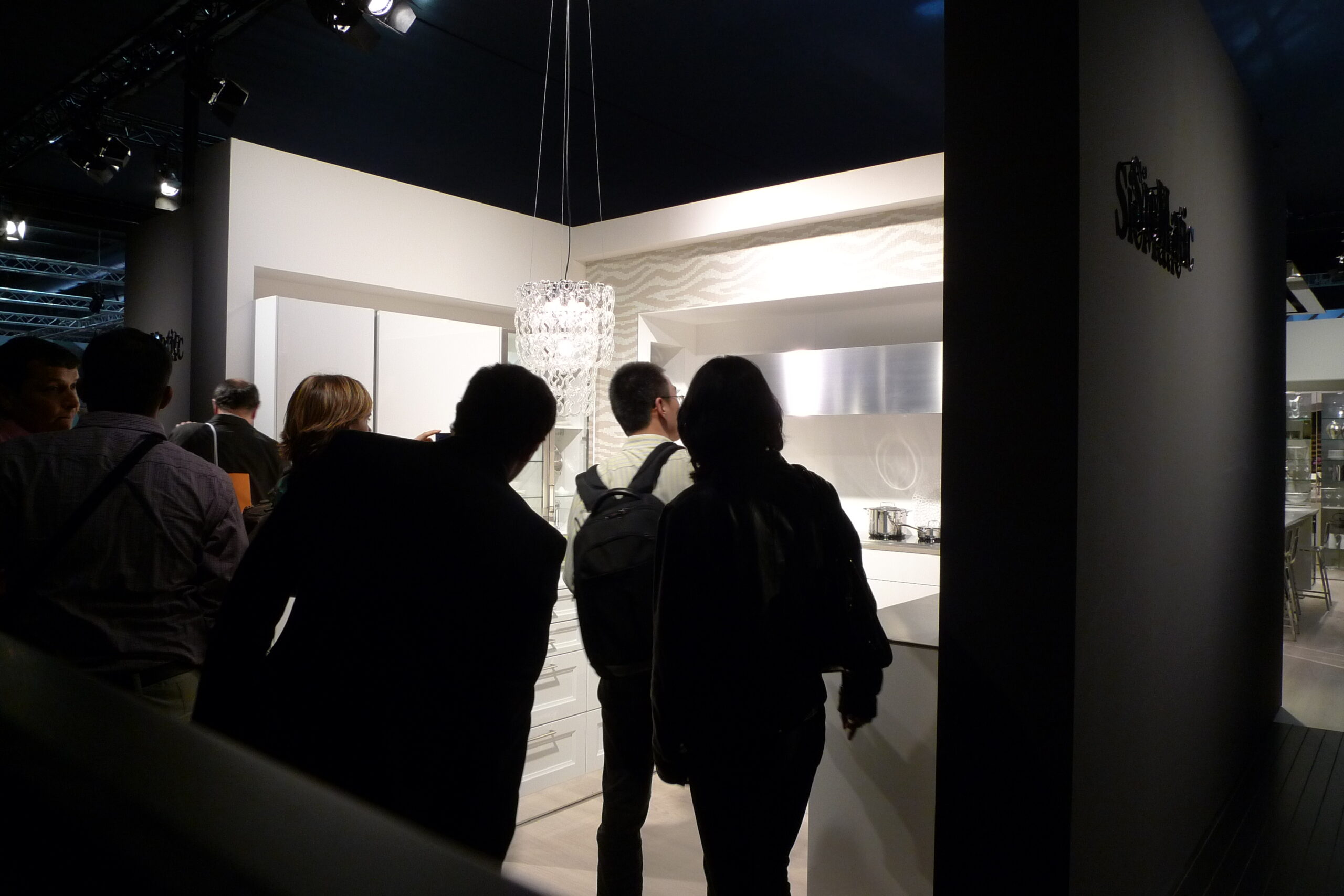 Die Standumrandung wird durch eine Bank ausgebildet, die von außen freie Einblicke auf alle Küchen zulässt und den Standbesucher in die Betrachtung der Inszenierung eintauchen lässt. Die Standbesucher sitzen „Schatten der Umrandung“ diskret im über Schulterhöhe offenen Stand.